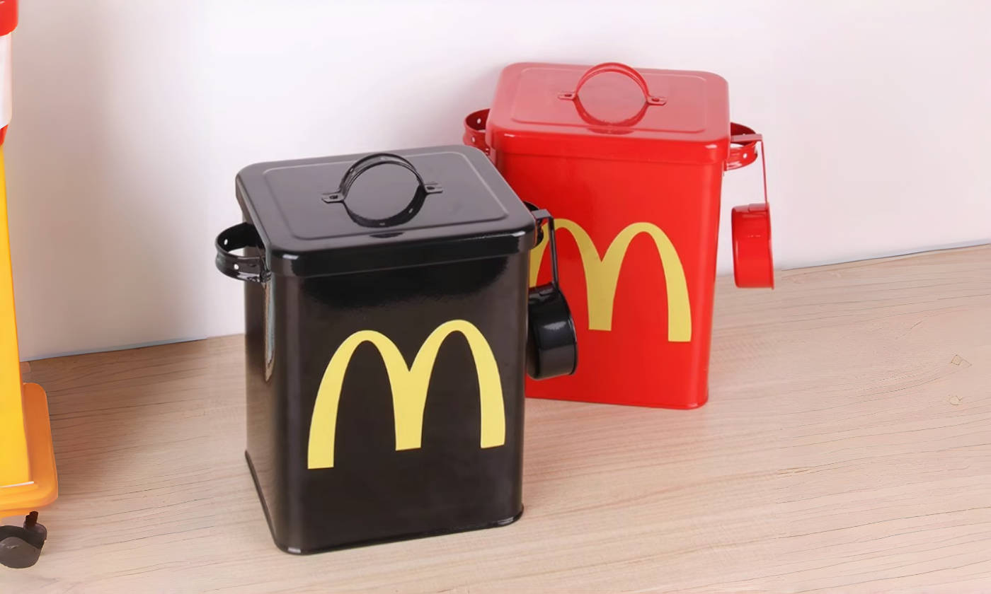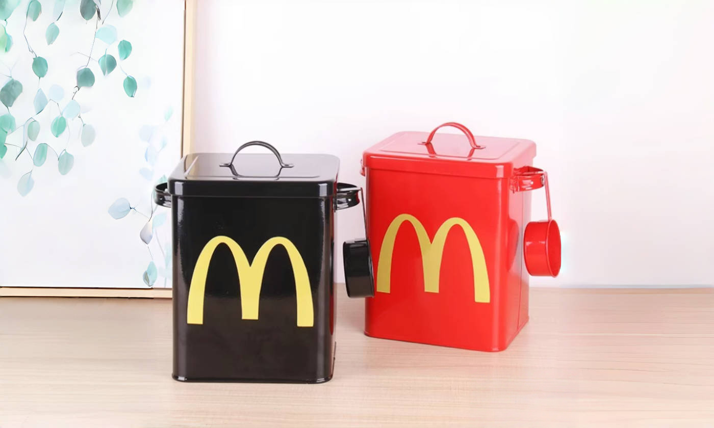 Keep kibble fresh and your counter cute with a 6 L galvanized steel food tin. The powder-coated body resists rust, the gasketed lid blocks moisture and pests, and the hanging scoop makes portioning easy. Durable, food-safe, and sized for daily refills.