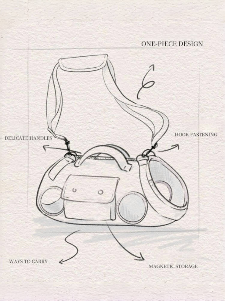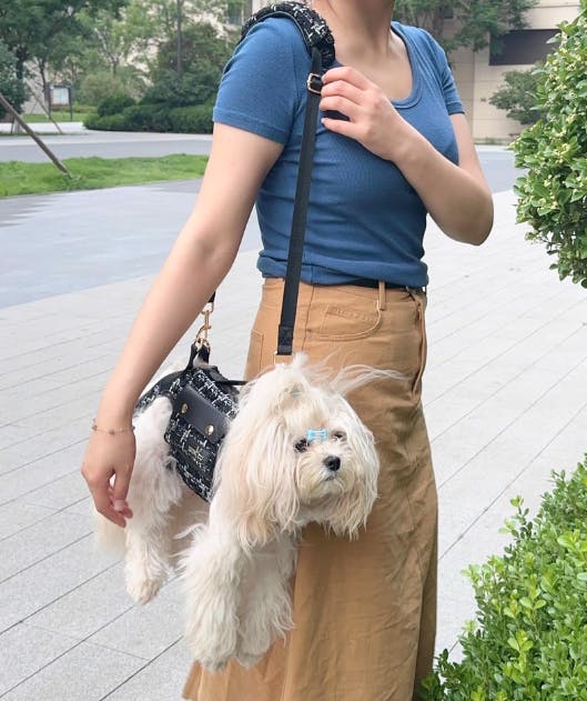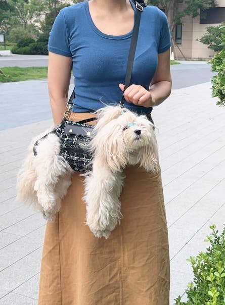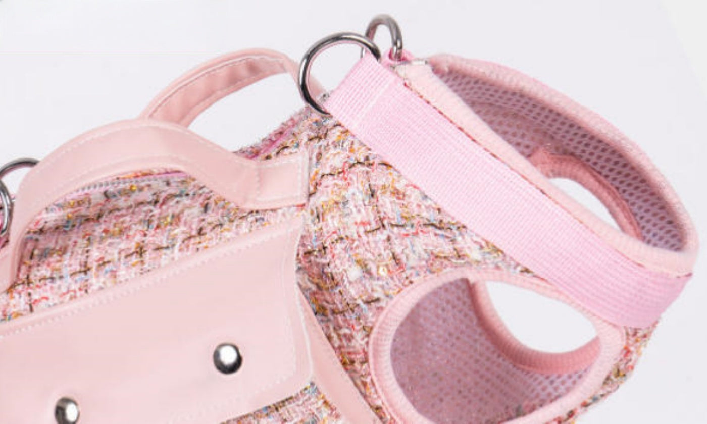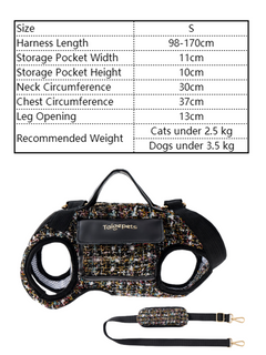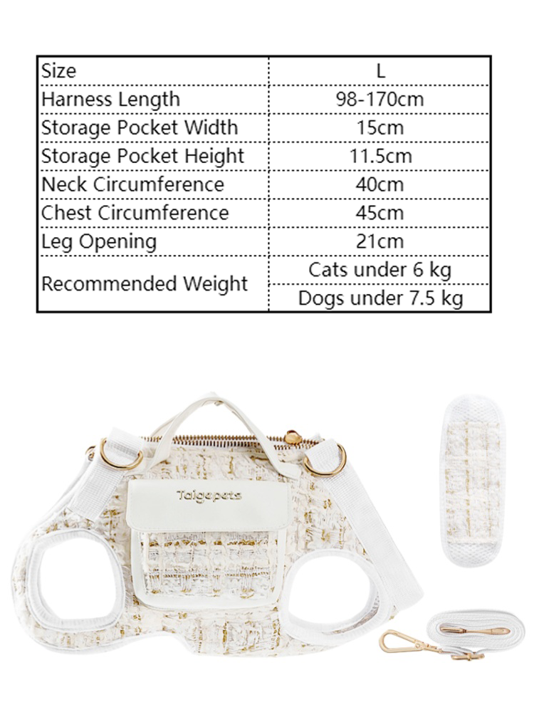 A Chanel-inspired tweed pet sling that blends fashion with function. The ergonomic, body-hugging design cushions the spine, while a 6 cm padded strap eases long carries. Magnetic pockets, anti-chafe wraps, and a secure safety hook keep outings comfy—fits pets up to 8 kg in S/M/L.
