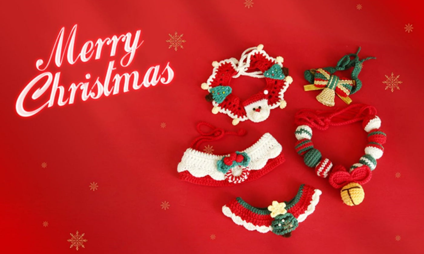 Each collar is crafted with soft yarn and playful motifs that photograph beautifully, turning everyday moments into holiday memories without bulky costumes.