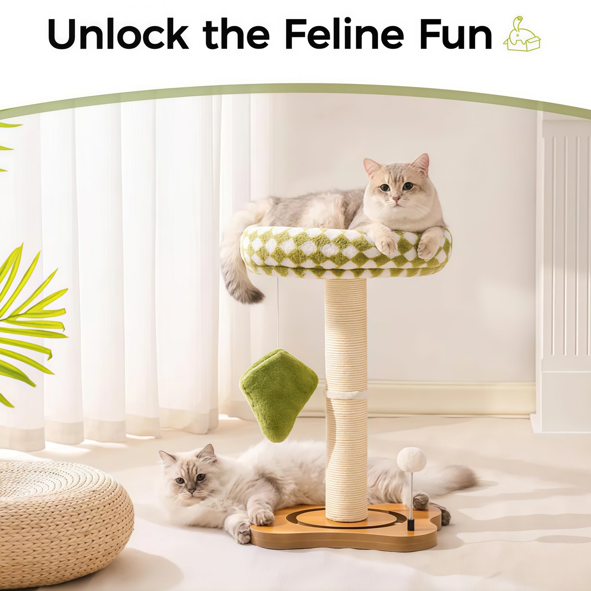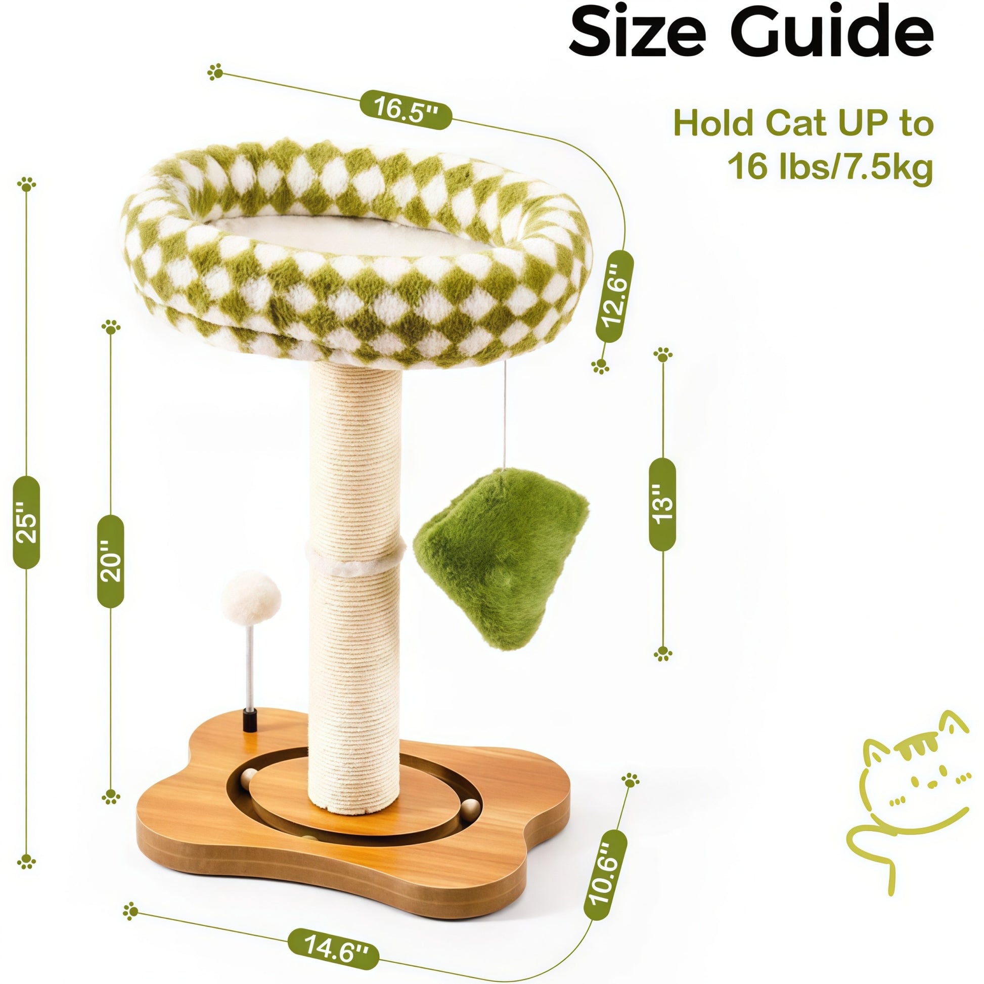 Play, scratch, and snooze in one place. 2-in-1 cat tower pairs durable sisal posts with an interactive ball-track and a plush, washable top bed. A thick, anti-slip base keeps everything stable and quiet.