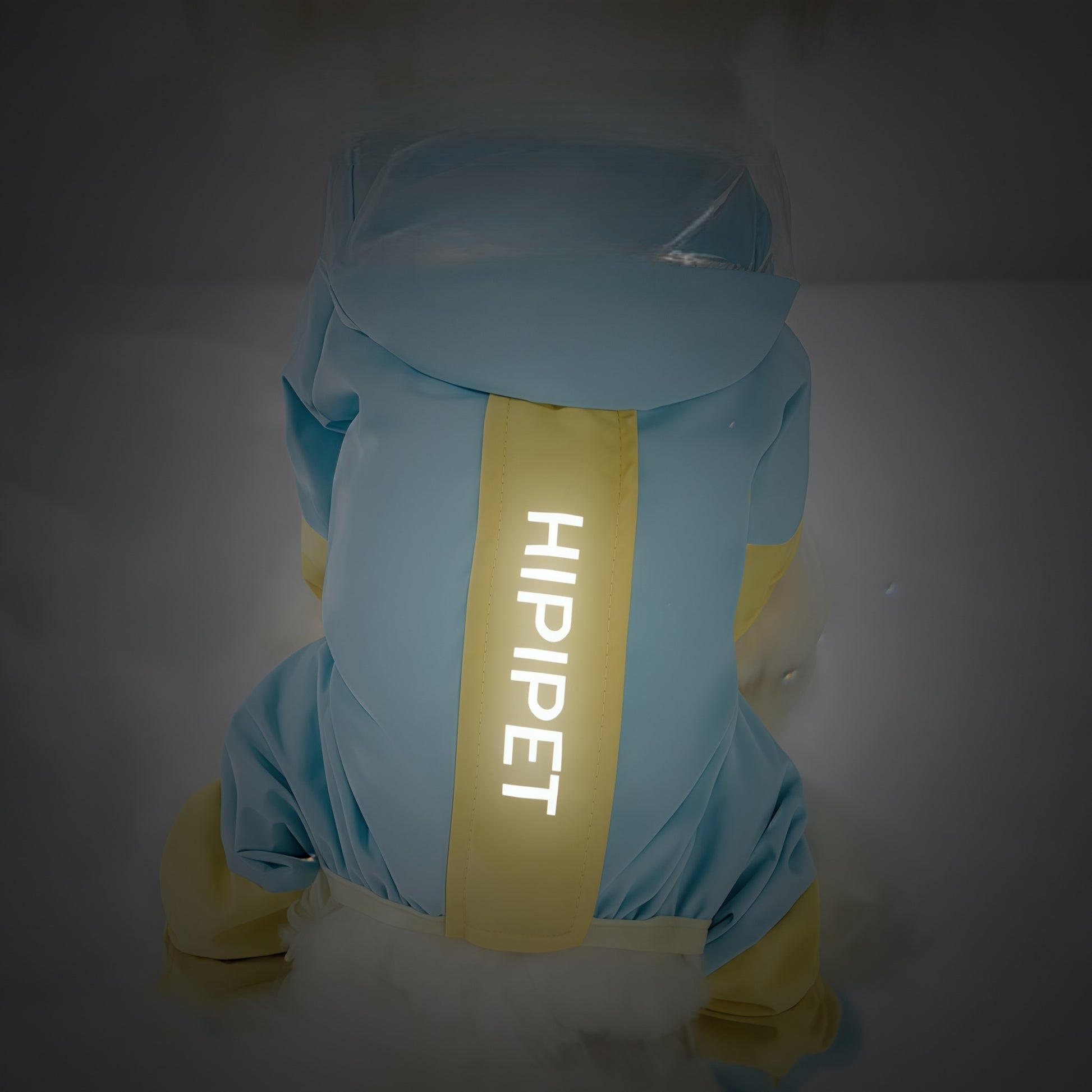 Rainy walks, solved. This 4-leg waterproof dog raincoat features a snap-on belly closure, a clear extended brim, and reflective detailing for low-light visibility. Built-in leash access keeps strolls easy while the color-pop design stays cute in any weather.