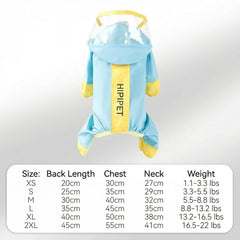 From the clear extended brim to the snug leg openings, this coat helps keep drizzle and splash off your dogās body. The fabric wipes clean fast, so muddy streets donāt turn into bath time.