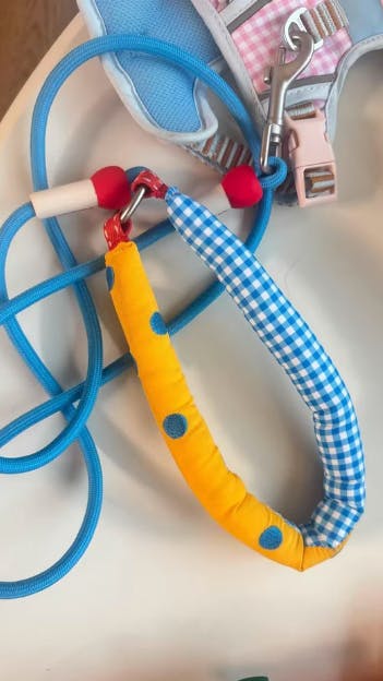 Not chew-proof; inspect webbing and hardware before each walk and discontinue if frayed.