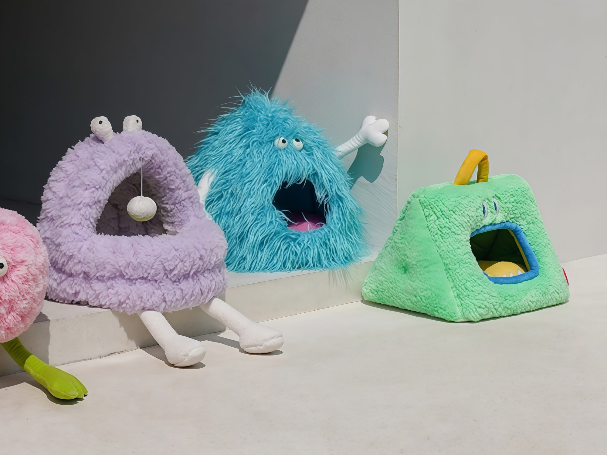 Meet these cuddly monster beds—Purple BaoBao, Blue SongSong, and Green YaYa. A semi-enclosed plush dome blocks drafts, a thick cushion keeps naps warm, and playful details (ball/handle) add daily fun. Anti-slip base, removable pad, easy clean.